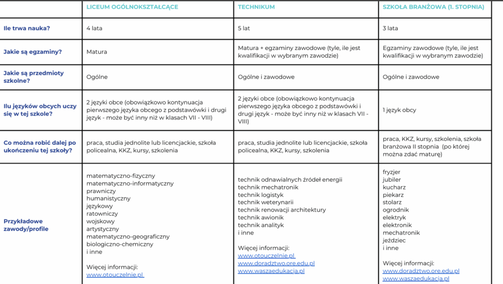 Po szkole podstawowej możesz kontynuować naukę w jednym z trzech typach szkół: