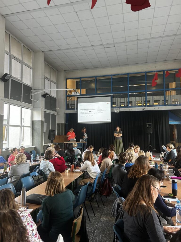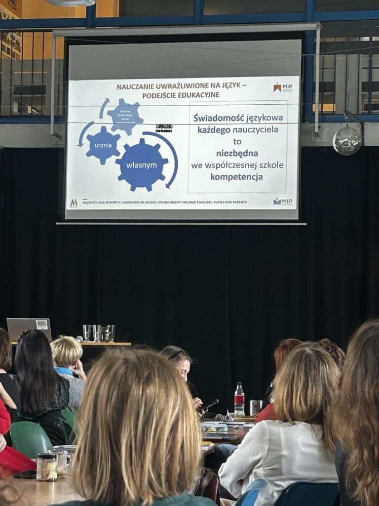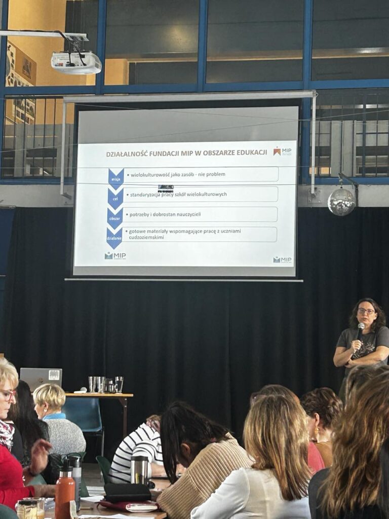 20 marca 2025 r. Fundacja Migrant Info Point zorganizowała szkolenie pt. „Szkoła włączająca przez język: Językowe aspekty nauczania przedmiotowego uczniów z doświadczeniem migracji/uchodźstwa”. Spotkanie edukacyjne rozpoczęło się od części teoretycznej poświęconej aspektom pracy z uczniami z doświadczeniem migracji, skupiając się na temacie ich integracji szkolnej. Następnie odbyła się część warsztatowa, w której uczestnicy mieli okazję praktycznie eksplorować metody i narzędzia wspierające proces nauczania. Szkolenie wpisuje się w działania realizowane przez szkołę w ramach projektu „Otwieramy Drzwi do Europejskiej Edukacji” realizowanego w ramach FERS.