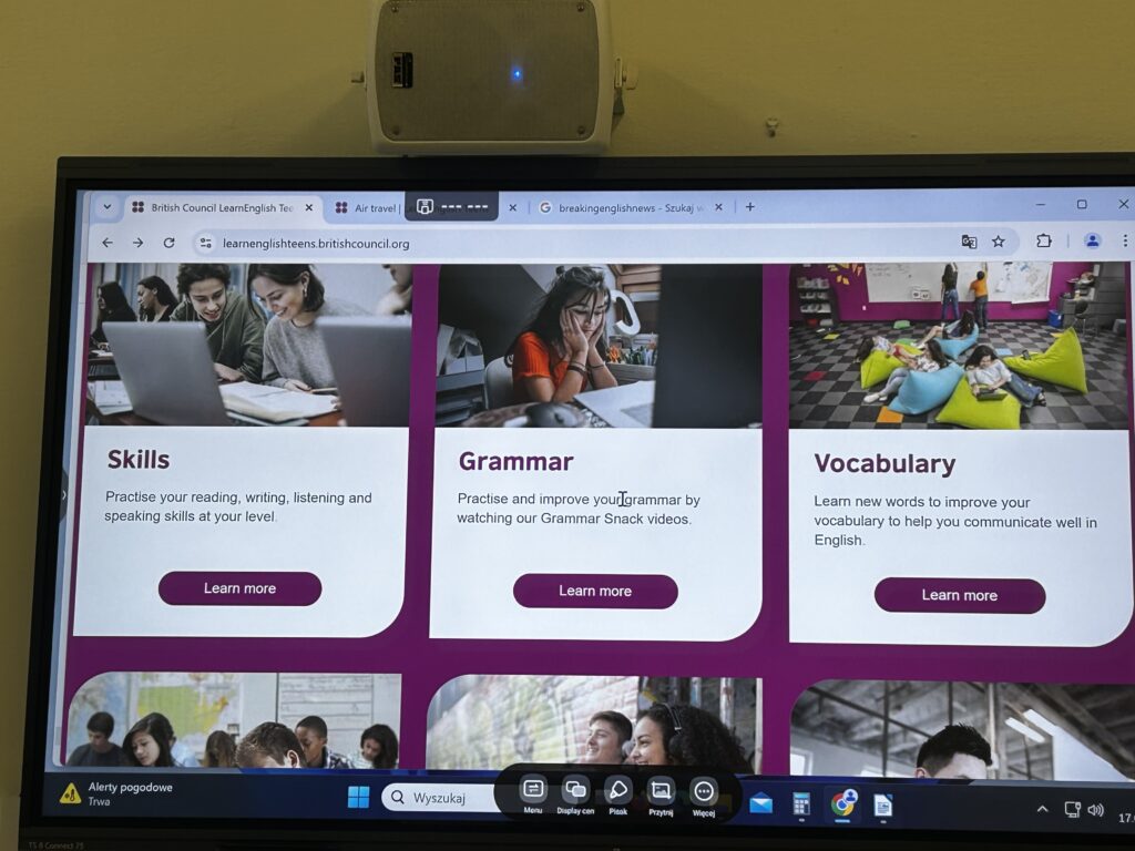 Kurs omawiał również nowoczesne aplikacje i strony internetowe przydantne w nauczaniu języka angielskiego.