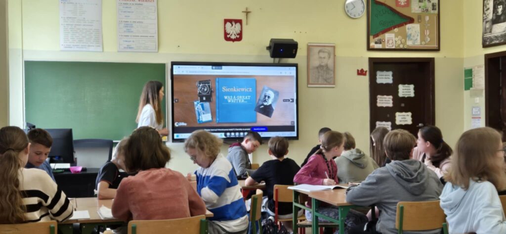 26 maja uczniowie klasy 5c wzięli udział w wyjątkowej lekcji, która połączyła treści z języka polskiego i angielskiego w ramach innowacyjnej metody nauczania CLIL (Content and Language Integrated Learning). Zajęcia zostały przygotowane i poprowadzone przez panią Ewę Walachowską oraz pana Bartłomieja Bujaka. Tematem spotkania było życie i twórczość Henryka Sienkiewicza – polskiego noblisty, autora takich dzieł jak „Quo vadis” czy „W pustyni i w puszczy”. Uczniowie poznali wiele interesujących faktów z życia pisarza, uczestniczyli w quizach, rozwiązywali interaktywne zadania oraz pracowali w grupach – a wszystko to w dwóch językach: polskim i angielskim. Niecodzienną atrakcją był moment, w którym „sam Henryk Sienkiewicz” – za sprawą technologii i odrobiny kreatywności nauczycieli – przemówił do uczniów po angielsku, dzieląc się refleksją na temat swojej twórczości. To nie tylko poszerzyło wiedzę literacką uczniów, ale także pokazało, że języki obce mogą stać się narzędziem do głębszego rozumienia treści i rozwijania kompetencji XXI wieku. Lekcja była świetnym przykładem nowoczesnego podejścia do nauczania i z pewnością na długo pozostanie w pamięci uczestników.
