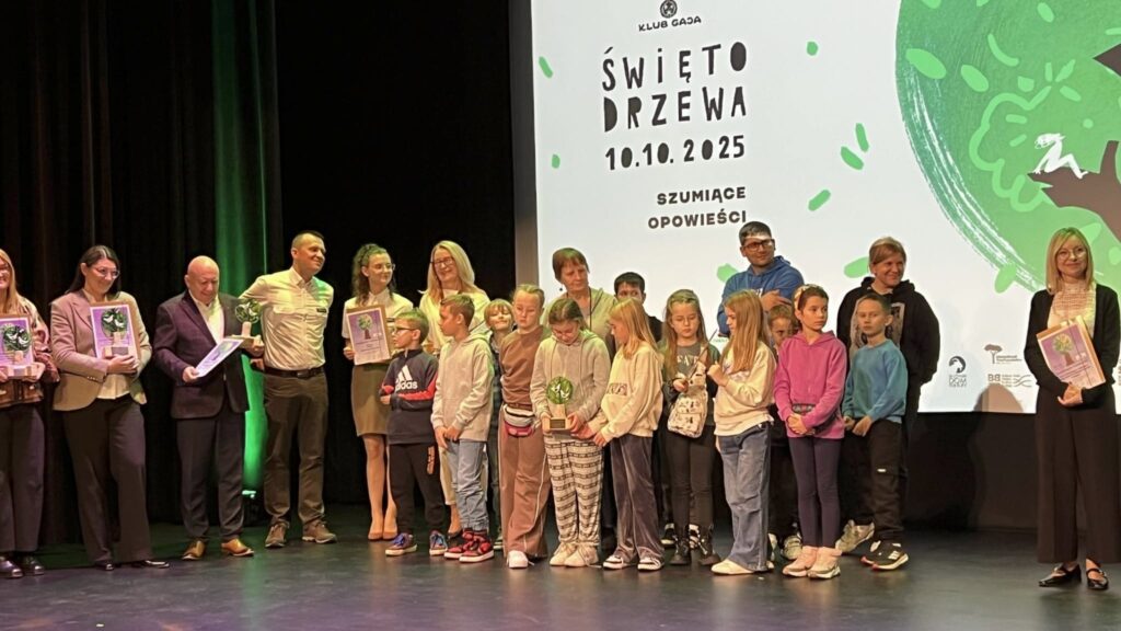„Czarodziejskie Drzewo” – nagroda w Ogólnopolskim Konkursie organizowanym przez Stowarzyszenie Ekologiczno-Artystyczne Klub Gaja trafiła do naszej szkoły po raz czwarty. A wszystko to dzięki zaangażowaniu nie tylko nauczycielek edukacji wczesnoszkolnej, ale przede wszystkim rodziców i dzieciaków z klasy 3c. Bardzo nam było miło uczestniczyć w inauguracji 23. edycji Święta Drzewa w Warszawie w Służewskim Domu Kultury. Wspólnie z prezesem Klubu Gaja panem Jackiem Bożkiem i Ambasadorem Święta Drzewa, aktorem Bartłomiejem Topą posadziliśmy topolę osikę i przeczytaliśmy dla niej wiersz Marii Pawlikowskiej Jasnorzewskiej „Wszystko zależy od ciebie”. Posadzona osika była upamiętnieniem niezwykłego talentu poetki. Pomimo że byliśmy najmłodszymi uczestnikami gali, czuliśmy się ważni i docenieni.