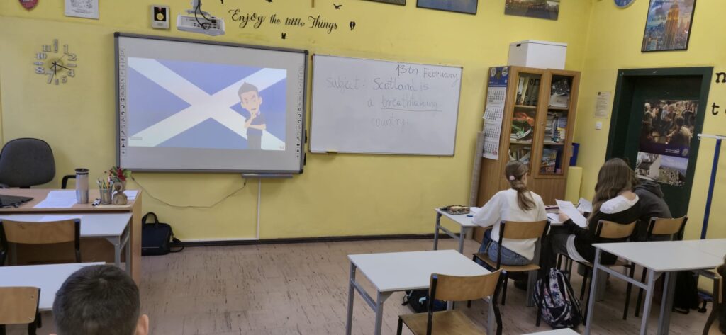 13 lutego 2026, klasa 6c uczestniczyła w lekcji CLIL (content and language integrated learning) o Szkocji. Uczniowie poznali ciekawostki historyczne, kulturowe, geograficzne oraz wiele innych związanych z tym pięknym krajem. Pan Bartłomiej Bujak, nauczyciel języka angielskiego, który tę lekcję przeprowadził, specjalnie na potrzeby tej lekcji zamienił się w Szkota i przemówił do uczniów ze Szkockim akcentem.